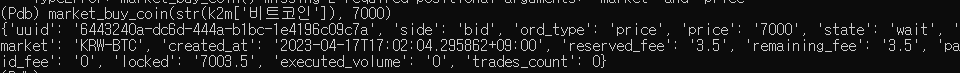 market_buy_coin(str(k2m['비트코인']), 7000)['body']