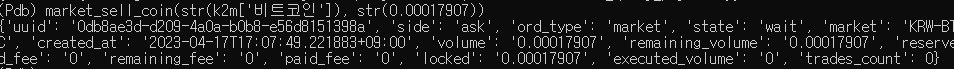 market_sell_coin(str(k2m['비트코인']), str(0.00017907))['body']