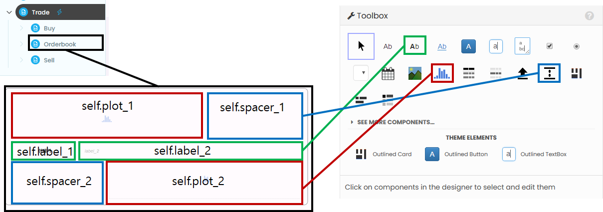 이때, Orderbook Form은 아래와 같이 Spacer, Plot, Text 를 사용해서 구성한다.(Main.Trade.Orderbook에서 수정할것)