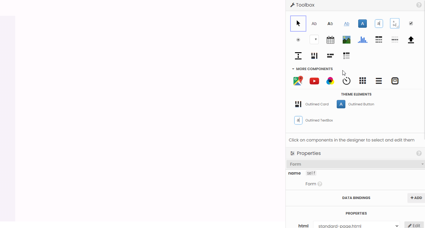 # Set Form properties and Data Bindings.